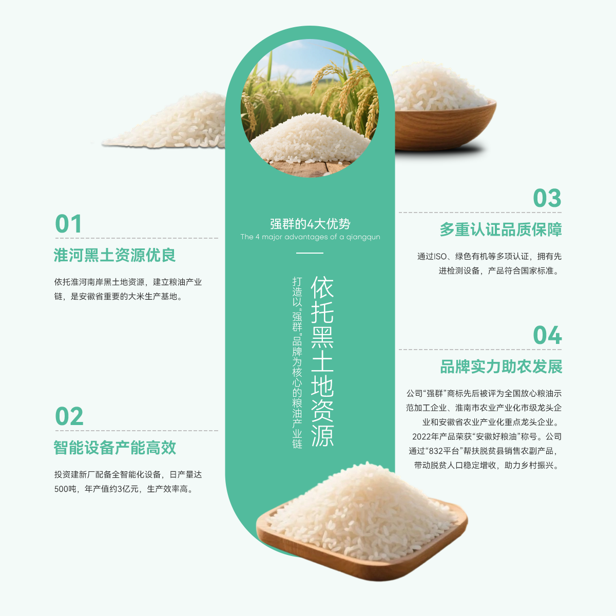 壽縣強(qiáng)群糧油貿(mào)易有限公司成立于2011年,座落在淮南市壽縣澗溝鎮(zhèn),是一家集種植、加工、收儲(chǔ)、銷售于一體、以生產(chǎn)中、高檔質(zhì)優(yōu)、特色類大米為主的綜合性企業(yè)。公司依托準(zhǔn)河南岸的黑土地資源,打造以“強(qiáng)群”品牌為核心的糧油產(chǎn)業(yè)鏈,是安徽省重要的大米生產(chǎn)基地。   為響應(yīng)市場(chǎng)增長(zhǎng)需求,公司2021年啟動(dòng)二期擴(kuò)產(chǎn)工程,其中新生產(chǎn)廠區(qū)建設(shè)投入資金近億元,建設(shè)現(xiàn)代化新生產(chǎn)線,總占地面積約4000...